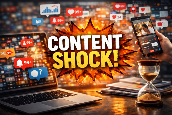 Content shock explica por que ficou mais difícil ser visto online: conteúdo demais, atenção de menos. Hoje, só ganha espaço quem entrega valor rápido, claro e relevante, usando formatos curtos e estratégicos para gerar alcance e engajamento.